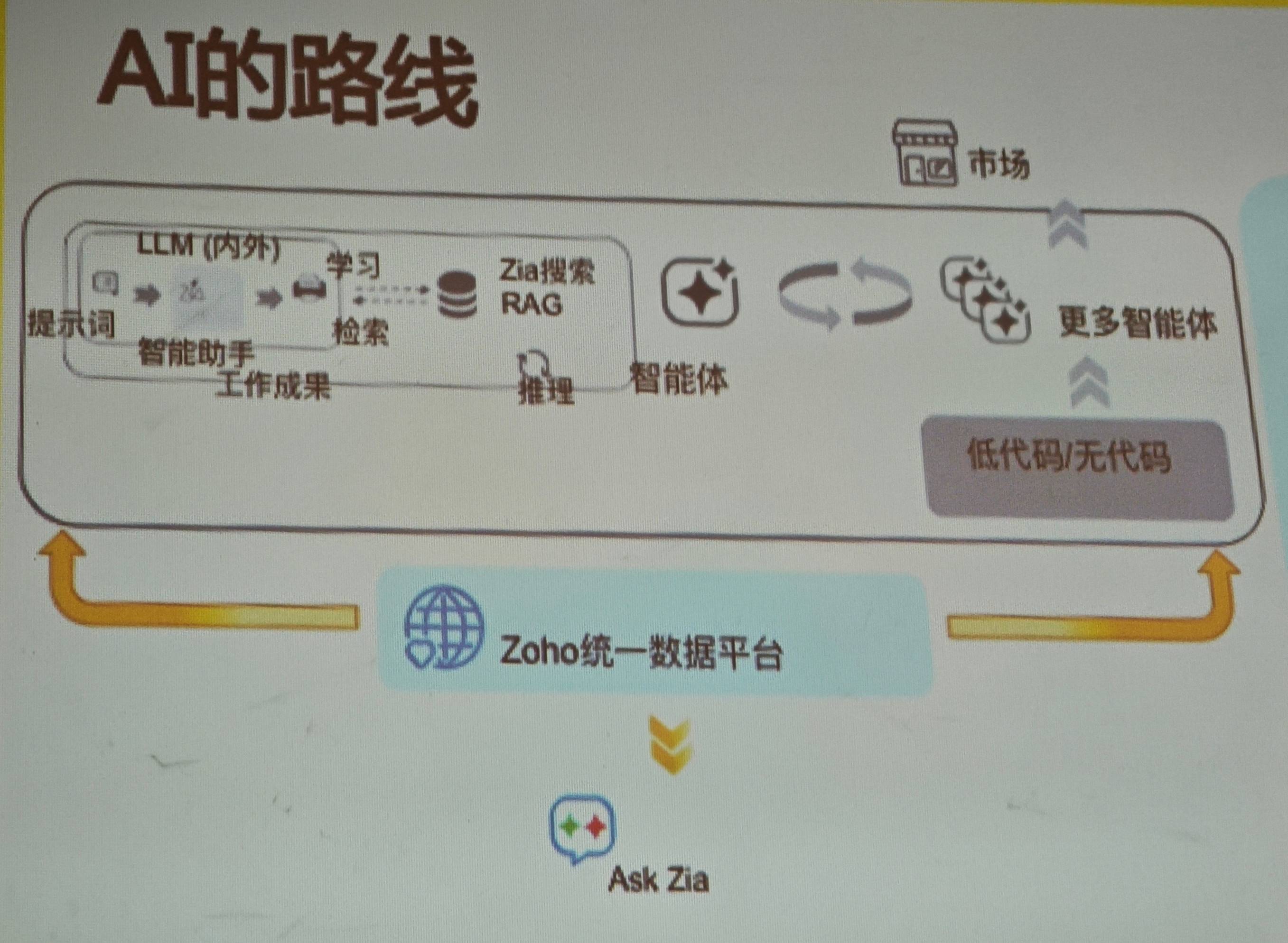 ManageEngine卓豪现场还展示了AI路线图,其技术演进方向是:先通过开放API和LLM在产品层面提升AI能力,再通过Zoho统一数据平台实现上下文感知,然后通过Zia智能体实现自主操作,最终通过智能体工作室和市场构建多智能体环境。目前,这套AI能力已嵌入服务管理、身份管理、端点安全、安全信息管理、可观测性和IT运营管理六条产品线。