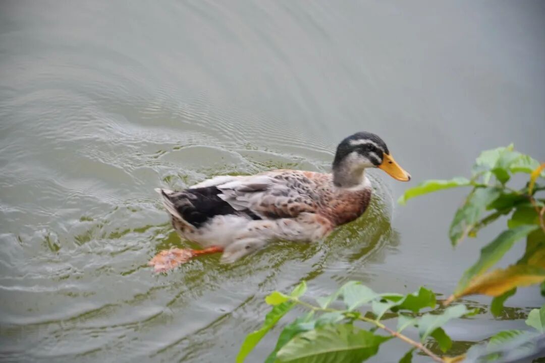 湖里的鸭子则悠哉游弋