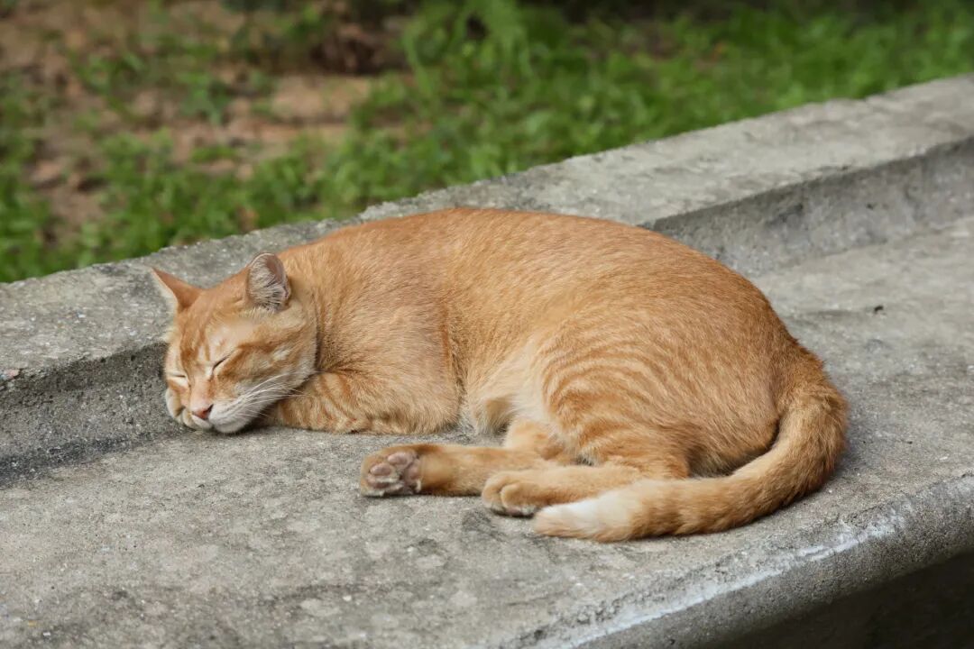 橘猫蜷成毛球晒太阳